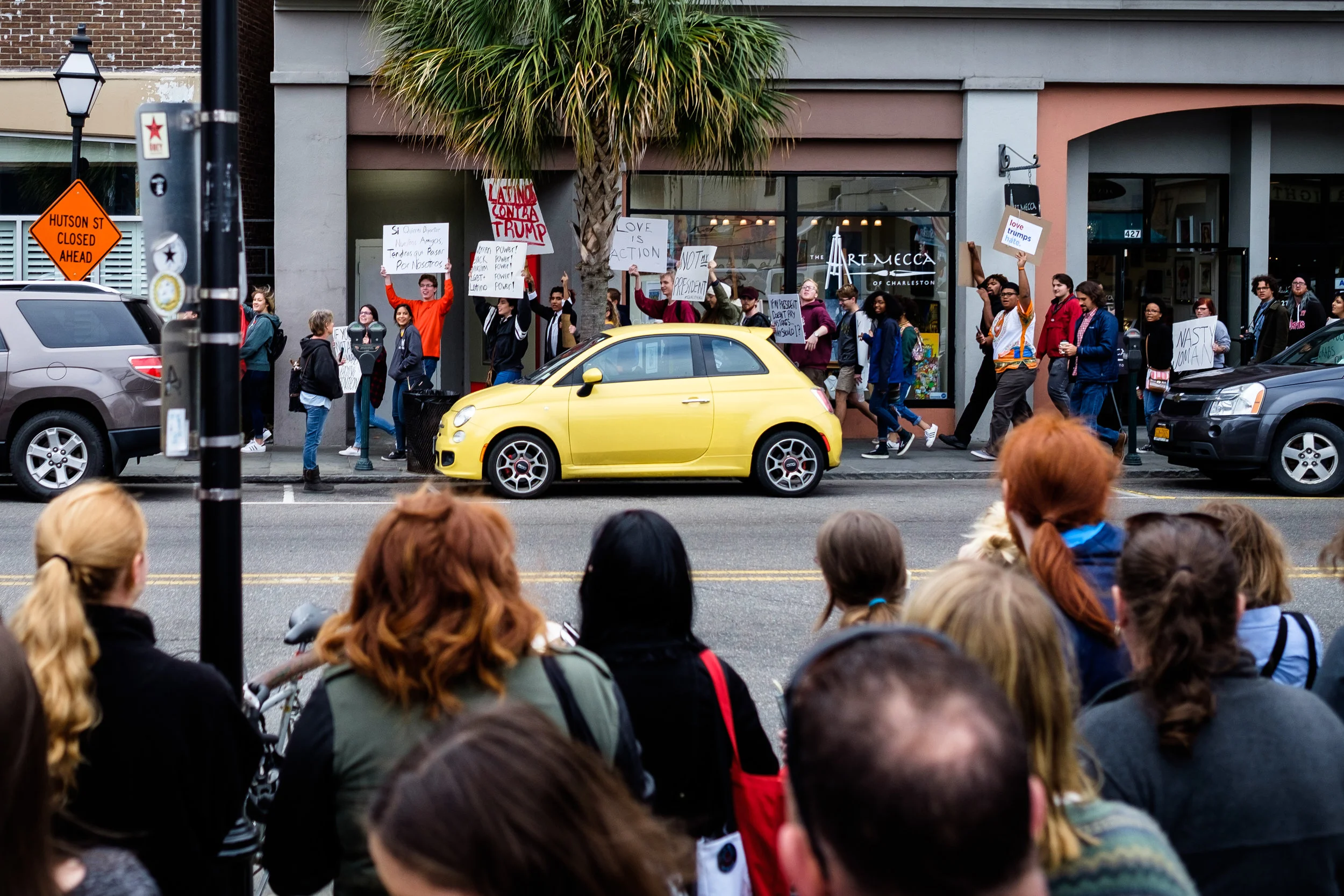 Setting the tone. Right when I got to YALLfest a group of students walked by on the opposite side to the street protesting the election results.