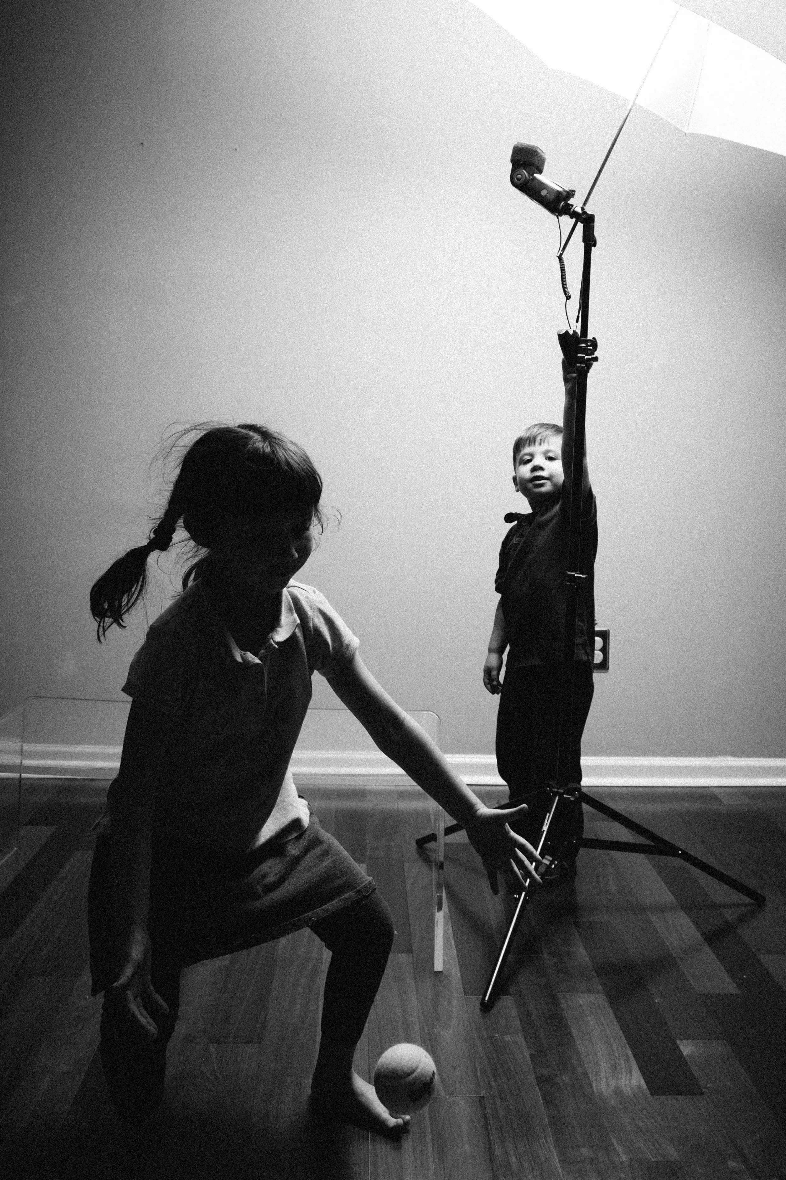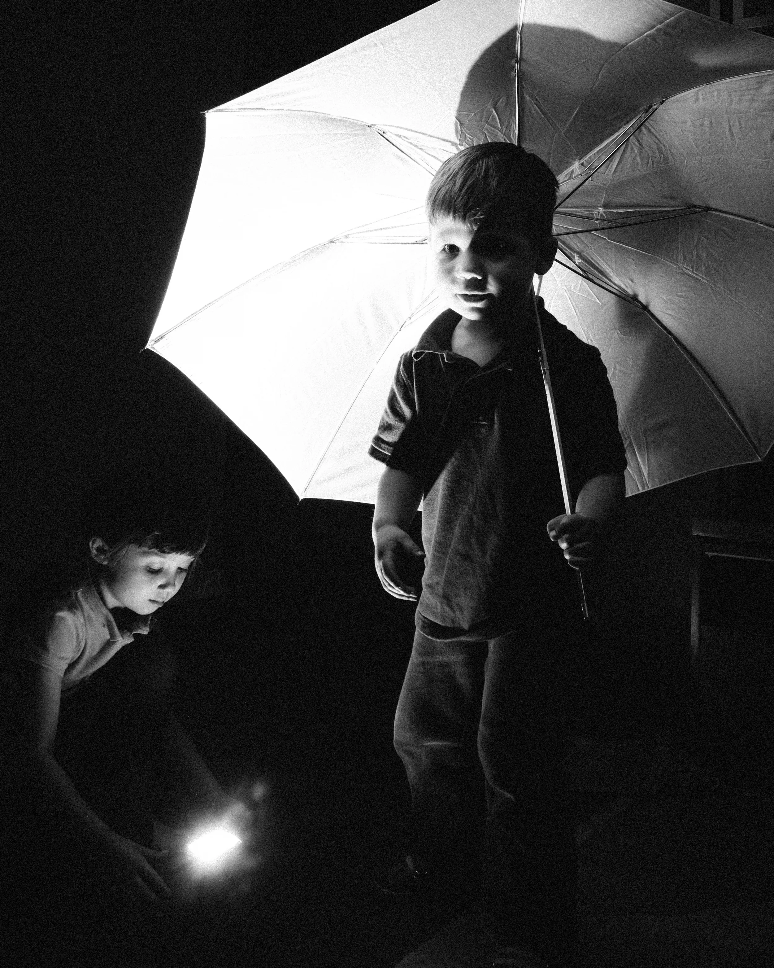 I set out to get a portrait of my three year old son today, but he has reached the point where he's really not interested in sitting still for a picture. I didn't feel like pressing my luck today, so my solution was to break out the PocketWizards and let him fire the flash whenever he wanted. I would count down from three, and then take my shot just before he fired the trigger. I didn't end up getting a proper portrait, but I'm happy with how whimsical the shots turned out. Also, it's moments like these that I'm happy to have cheap flash gear (other than the PocketWizards, but those are pretty tough).
