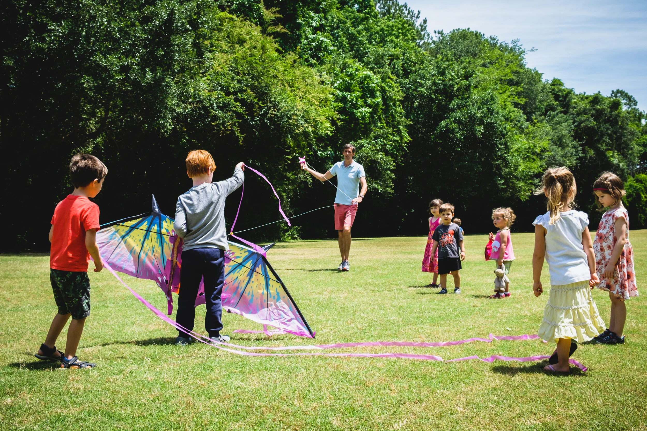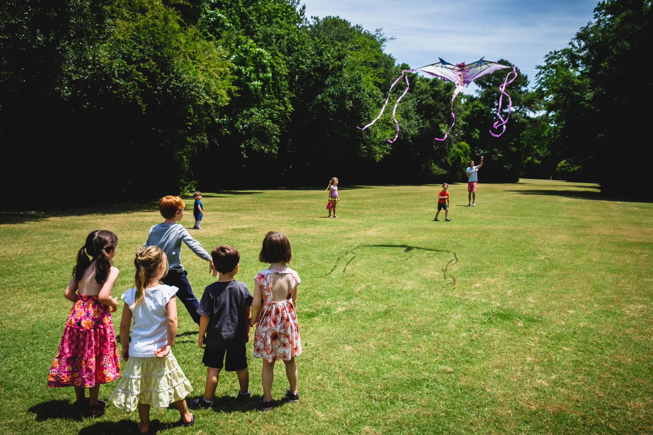During a birthday party today, we got a chance to try to fly a kite. The wind was right for it today, but unfortunately the only place at the park with a nice consistent breeze was directly under high power electrical lines. Since no one had a death wish, we opted for the less breezy section of the park, and were only able to get the kite airborne for a few seconds at a time. The kids loved every second of it, so I'd say it was still a success.