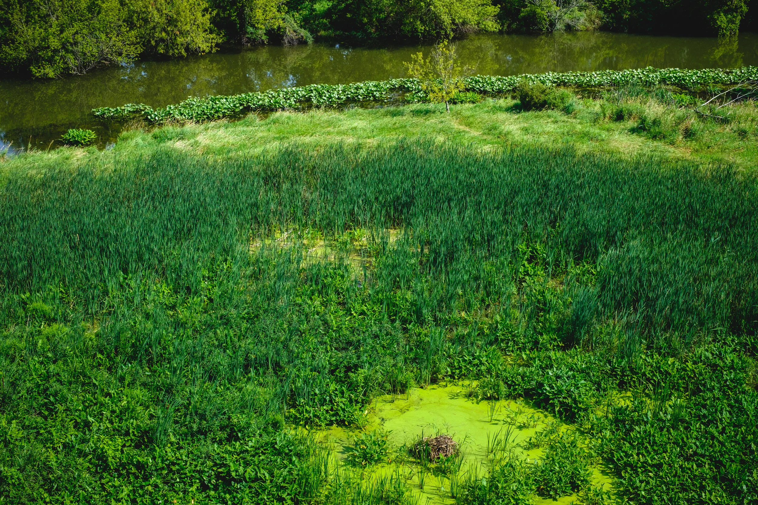 Scene from a lookout tower overlooking a Lake Michigan tributary.