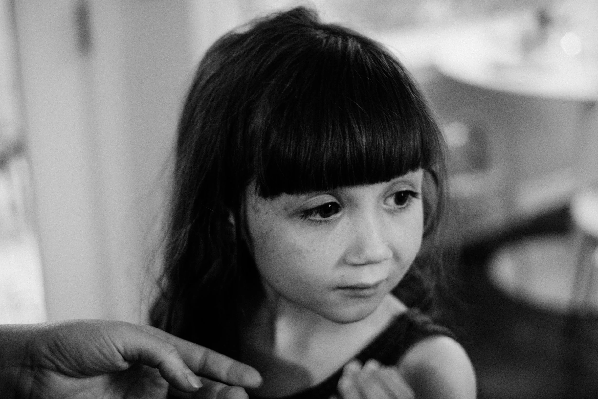 My daughter was getting annoyed with her bangs and asked my wife to trim them. I think we can call it a success.